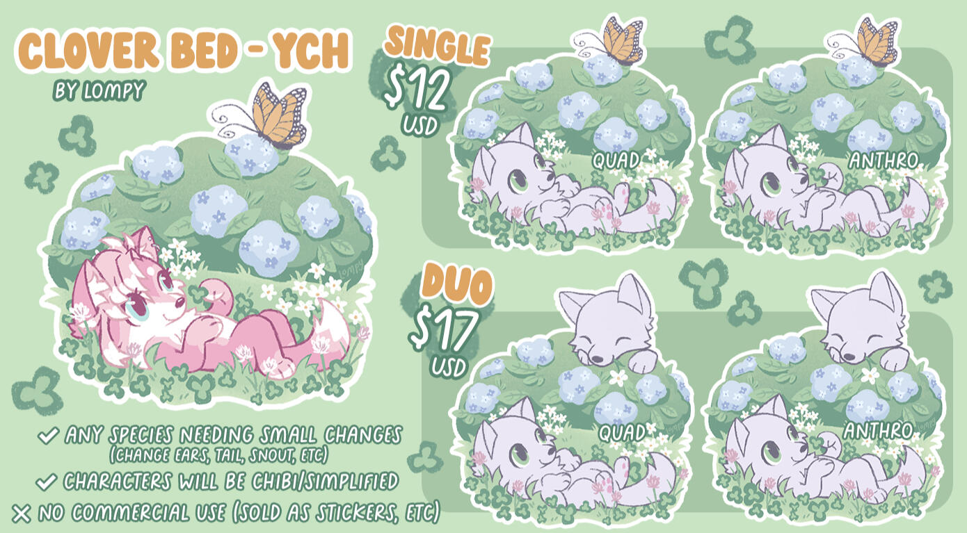 Hello! I'm Lompy, I love drawing all kinds of characters & critters ♥I accept commission requests through two methods.